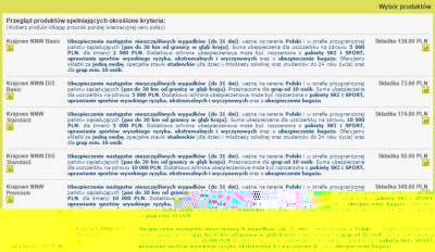 Peter żartujesz sobie prawda? Bo ja przez chwilę myślałem, że to było na poważnie... :-D Cena 1136 zł za ubezpieczenie jest kompletnie nieakceptowalna. Nie potrzebujemy "pakietu SKI". NSW wystarczy 5-10.000, bagażu również nie chcemy ubezpieczać, podobnie jak OC jest nam niepotrzebne. 300 zł MAKS (PS. poszukaj może w PTTK... Najlepiej przez naszych klubowych kolegów - Krzyśka Matysiaka i Michała Plutę, kontakt do nich znajdziesz na stronie)